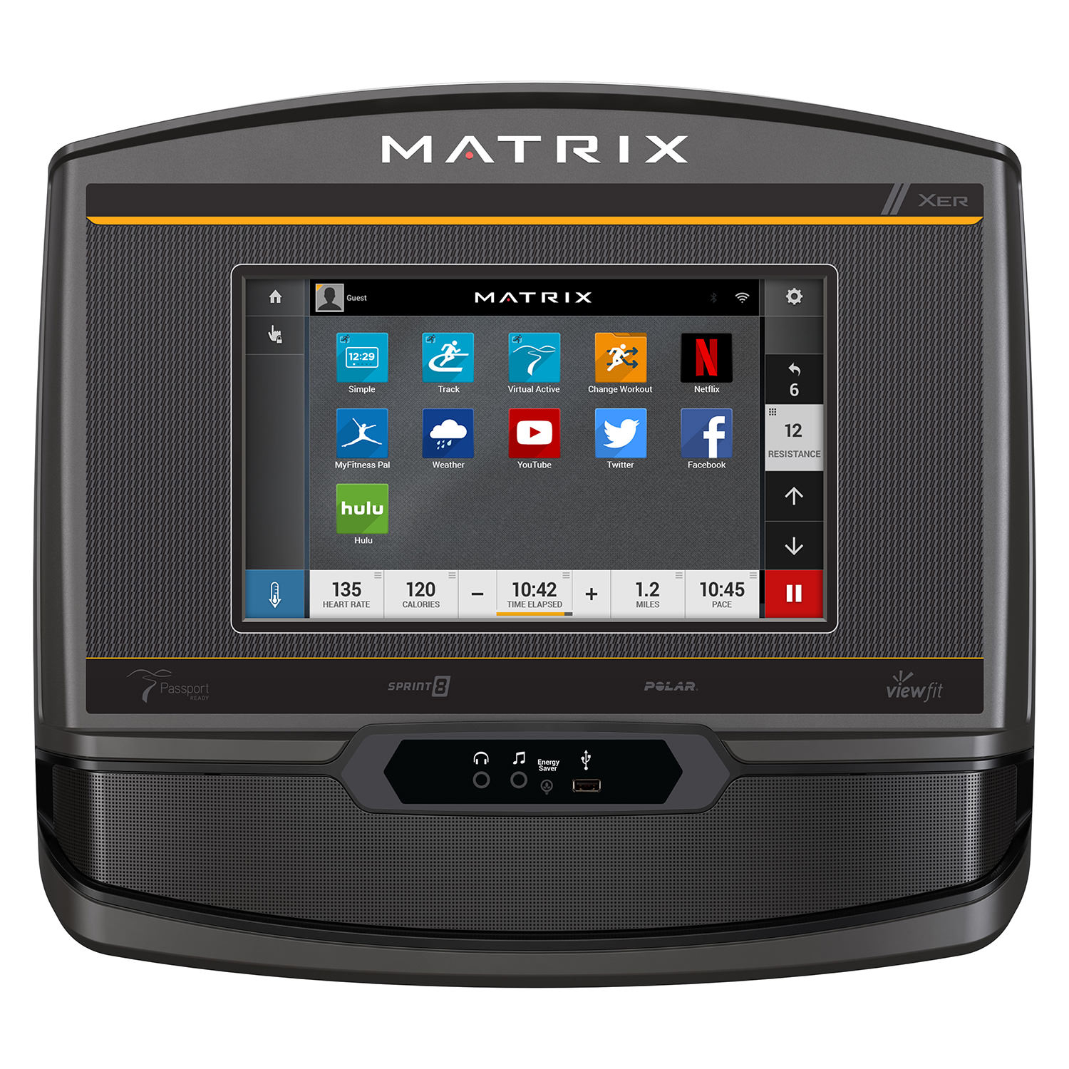 • Console XER: Touchscreen di classe 10” con connettività Bluetooth, porta USB, applicazioni della console, porta-lettura, modalità risparmio energetico, connettività Viewfit (integrazione con le applicazioni Fitness) e Passport™ Ready
