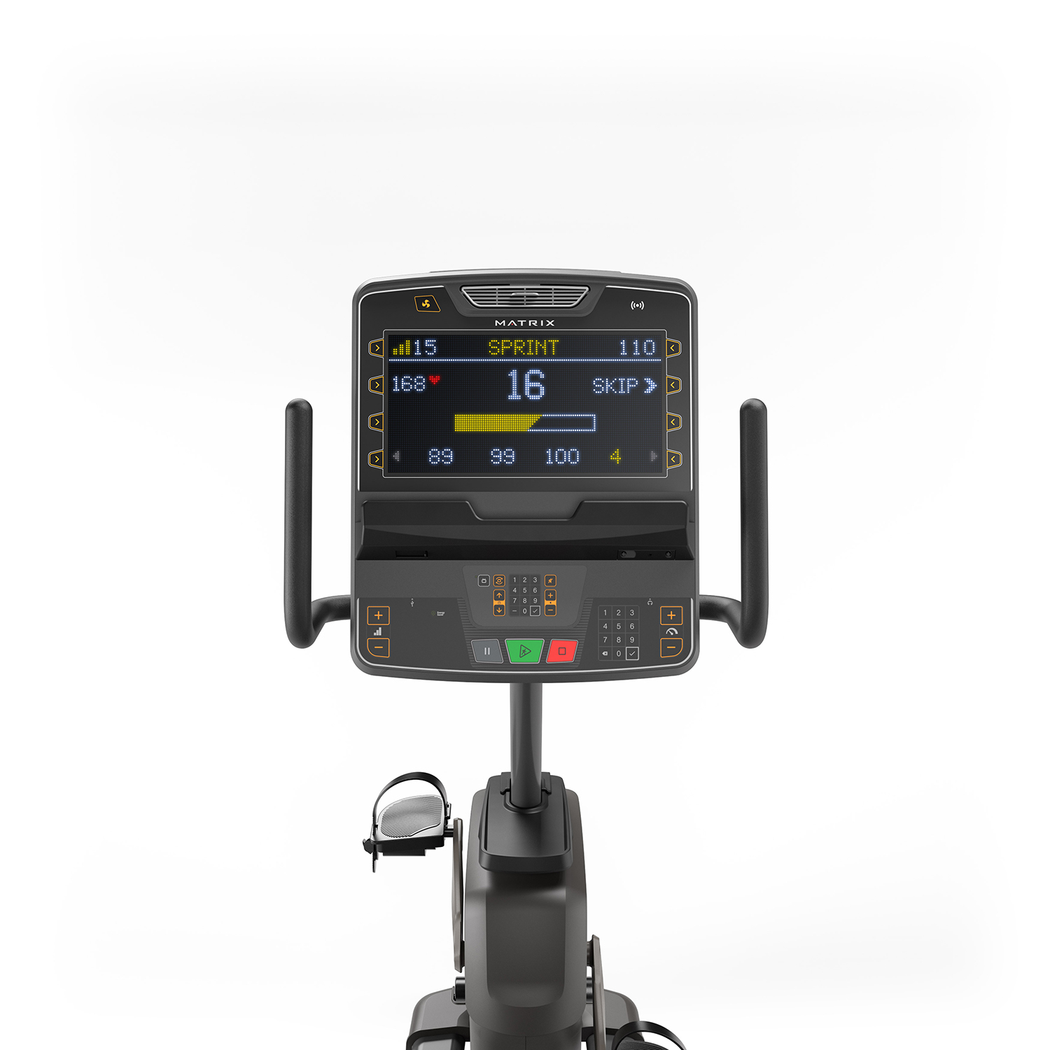 Matrix Fitness Commercial Lifestyle Upright Cycle er brugervenlig og har flere greb, et ergonomisk sæde til komfortable ture og selvbalancerende pedaler til at komme hurtigere i gang. Sædet kan nemt justeres via dreje- og trækknappen for at finde den ideelle kørestilling. Et modstandssystem med børsteløs generator leverer 30 modstandsniveauer (2-750 W) med store knapper på styret, så det er nemt at skifte undervejs. Upright-cyklen har også en vandflaskeholder og en tilbehørsbakke, så væske og personlige enheder er inden for rækkevidde. LED-konsollens enkle navigation betyder, at stort set alle kan sætte sig op på maskinen og komme i gang næsten med det samme. Det store display med tal og meddelelsescenter giver klar, letlæselig træningsfeedback, som holder medlemmerne på sporet af deres mål. Hver træning er en problemfri og smidig oplevelse med praktiske funktioner som et valgfrit RFID-login, et hovedtelefonstik, en USB-port og et læsestativ til personlige enheder. Træningsprogrammerne omfatter Go, Manual, Interval Training, Fat Burn, Rolling Hills, Target Heart Rate, Glute Training* og Fitness Tests. *Der tages forbehold for ændringer i programmerne. Kommercielt produkt bygget på bestilling - gennemsnitlig leveringstid er 2-14 uger, kontakt os venligst for yderligere oplysninger.